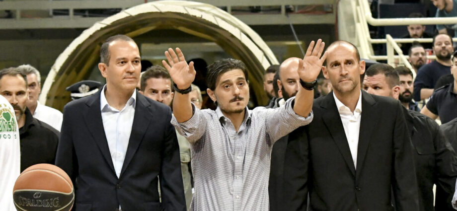 Ο Δημήτρης Γιαννακόπουλος με τους αδερφούς Αγγελόπουλους / Eurokinissi Sports