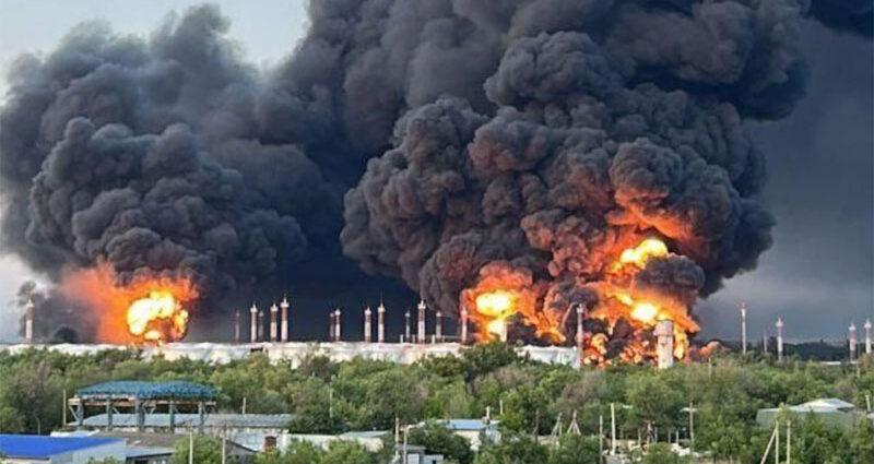 Πύρινη κόλαση από επιδρομή ουκρανικών drones στα ρωσικά διυλιστήρια της πόλης Ένγκελς