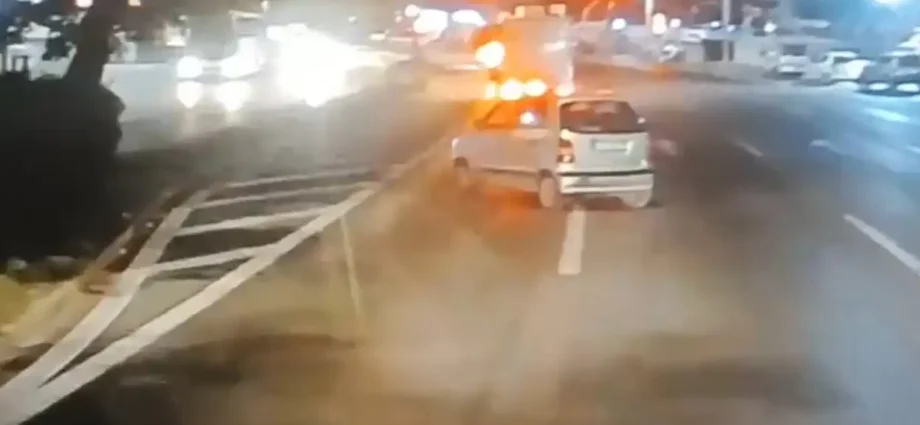 Το ασημί αυτοκίνητο, σύμφωνα με το οπτικό υλικό, διέσχισε σχεδόν κάθετα τον δρόμο, ενώ άλλα οχήματα προσπαθούσαν να το αποφύγουν. Όπως φαίνεται στο βίντεο, οι οδηγοί το απέφυγαν από καθαρή τύχη, με ένα από τα οχήματα να γλιτώνει τη σύγκρουση κυριολεκτικά για λίγα εκατοστά.
