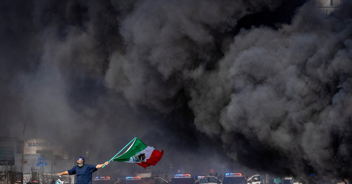Ένας άνδρας σε μοτοσικλέτα ανεμίζει μία μεξικανική σημαία κατά τη διάρκεια των επεισοδίων / Πηγή φωτογραφίας: REUTERS / Barbara Davidson