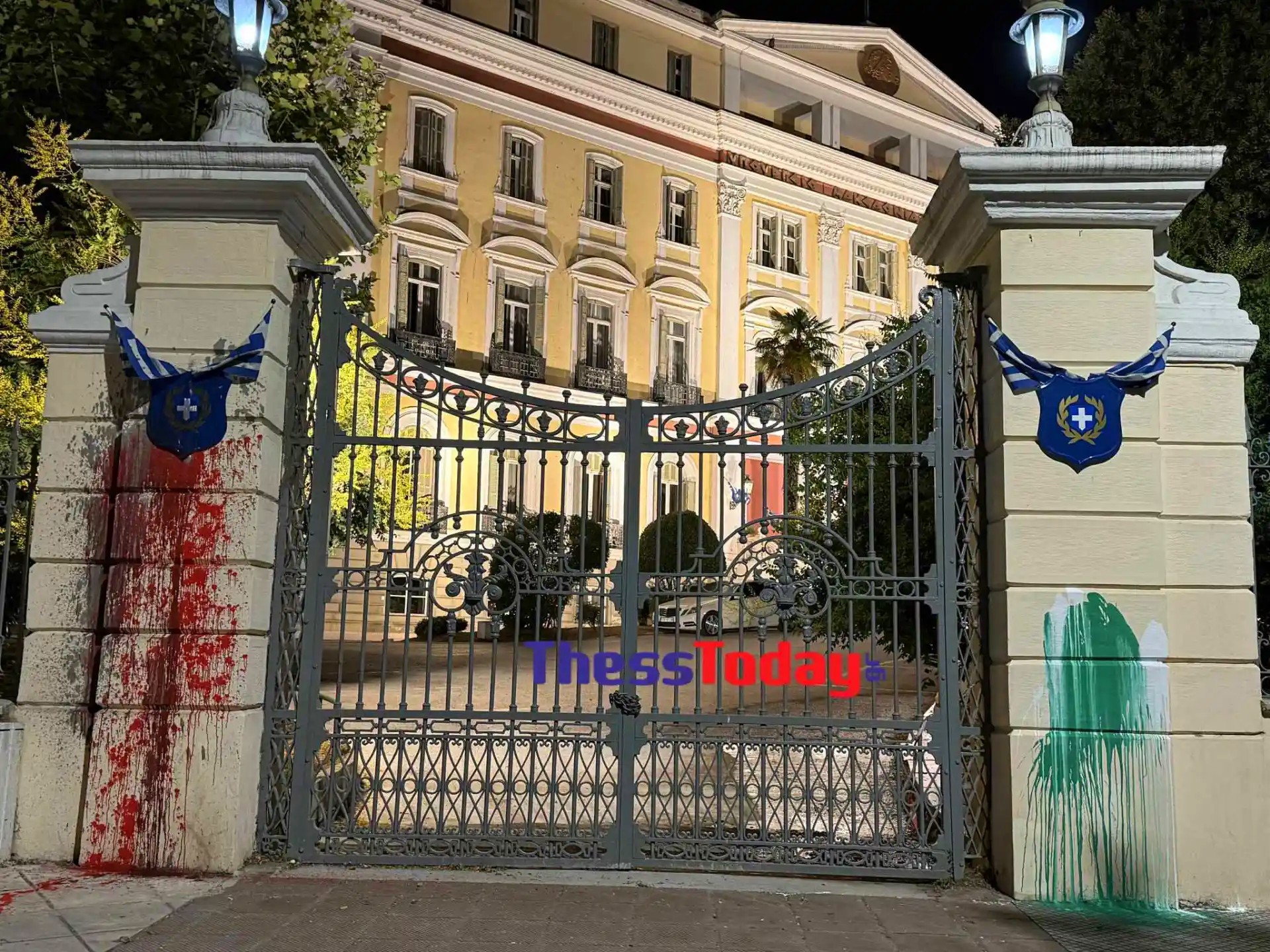 Θεσσαλονίκη: Έριξαν μπογιές στο υπουργείο Μακεδονίας-Θράκης στα… χρώματα της Παλαιστίνης