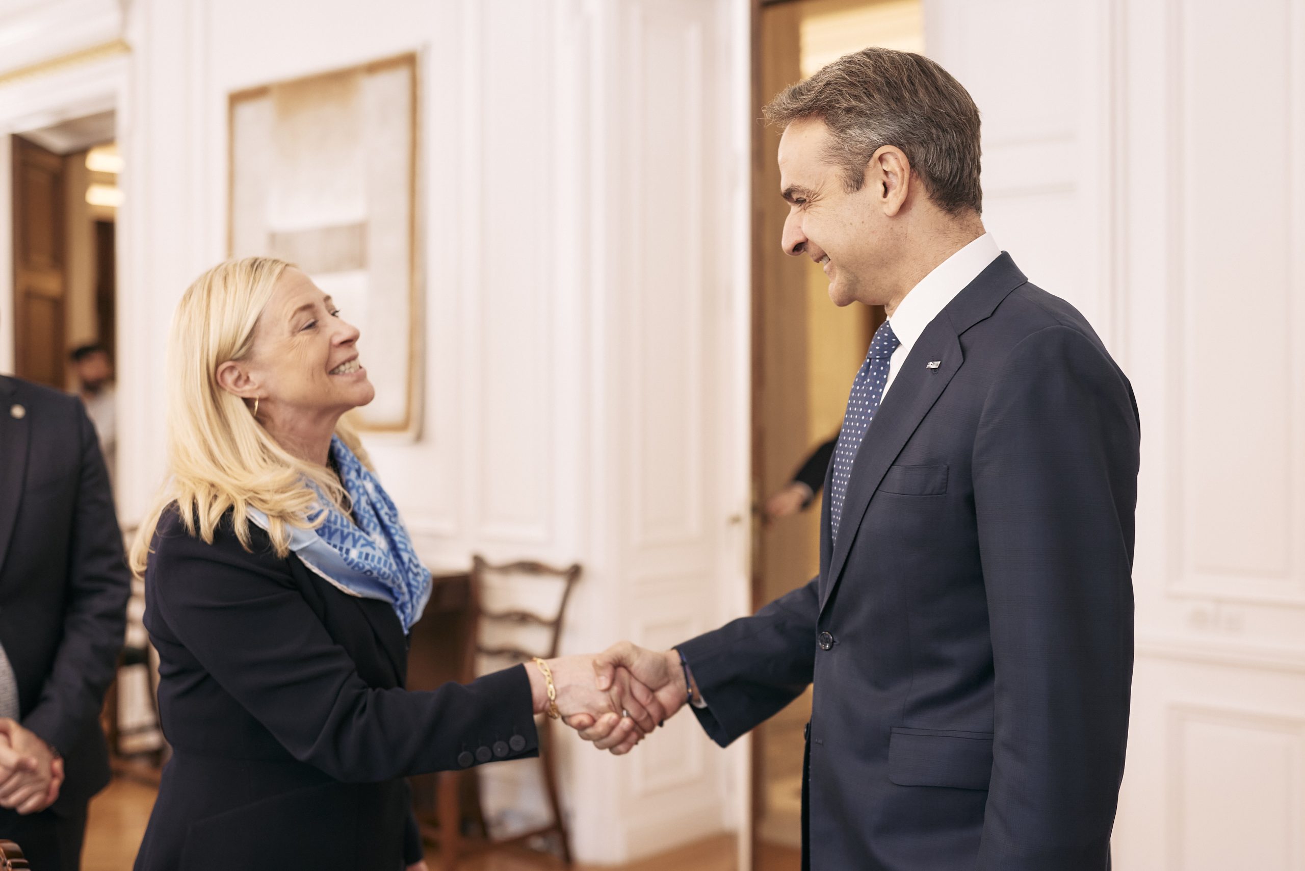 Ο Πρωθυπουργός Κυριάκος Μητσοτάκης συναντήθηκε το πρωί στο Μέγαρο Μαξίμου με την Πρόεδρο του Πανεπιστημίου Yale Maurie McInnis και τον Πρύτανη του Εθνικού και Καποδιστριακού Πανεπιστημίου Αθηνών Γεράσιμο Σιάσο, με αφορμή το κοινό μεταπτυχιακό πρόγραμμα που θα προσφέρουν τα δύο ιδρύματα, με τίτλο «Παγκόσμιες Περιβαλλοντικές Επιστήμες και Δημόσια Υγεία» και χρηματοδότηση από το Ταμείο Ανάκαμψης και Ανθεκτικότητας. Κατά τη διάρκεια της συνάντησης τονίστηκε η πολύ καλή συνεργασία που έχει αναπτυχθεί ανάμεσα στα δύο πανεπιστήμια και συζητήθηκε η δυνατότητα εμβάθυνσής της.