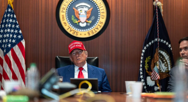 Viral έχουν γίνει οι εικόνες που δόθηκαν στη δημοσιότητα από τον Λευκό Οίκο, δείχνοντας τον Ντόναλντ Τραμπ να παρακολουθεί από το Situation Room την αεροπορική επιχείρηση των ΗΠΑ κατά τριών πυρηνικών εγκαταστάσεων στο Ιράν. Η στρατιωτική επέμβαση, που πραγματοποιήθηκε τα ξημερώματα της Κυριακής 22 Ιουνίου, αποτέλεσε το πιο ηχηρό μήνυμα της νέας κυβέρνησης Τραμπ στην Τεχεράνη, και η εικόνα του Τραμπ, μαζί με τον αντιπρόεδρο των ΗΠΑ στο κέντρο επιχειρήσεων προκάλεσε αίσθηση.