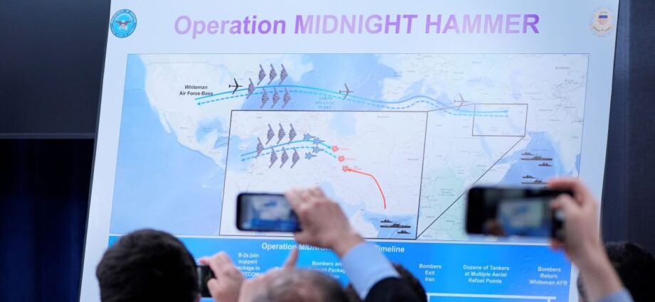 «Φοβερή και συντριπτική επιτυχία» χαρακτήρισε ο υπουργός Άμυνας των ΗΠΑ, Πιτ Χέγκσεθ, το αμερικανικό χτύπημα στις πυρηνικές εγκαταστάσεις του Ιράν τα ξημερώματα της Κυριακής (22.6.25), τονίζοντας ότι η επιχείρηση «Midnight Hammer» κατέστρεψε το ιρανικό πυρηνικό πρόγραμμα». Επτά βομβαρδιστικά stealth B-2 χρησιμοποιήθηκαν στις επιθέσεις κατά του Ιράν, όπως δήλωσε ο πρόεδρος του Μικτού Επιτελείου των αμερικανικών ενόπλων δυνάμεων στρατηγό Νταν Κέιν, σημειώνοντας ότι η χθεσινοβραδινή ήταν η μεγαλύτερη στρατιωτική επιχείρηση με χρήση B-2 στην ιστορία των ΗΠΑ.