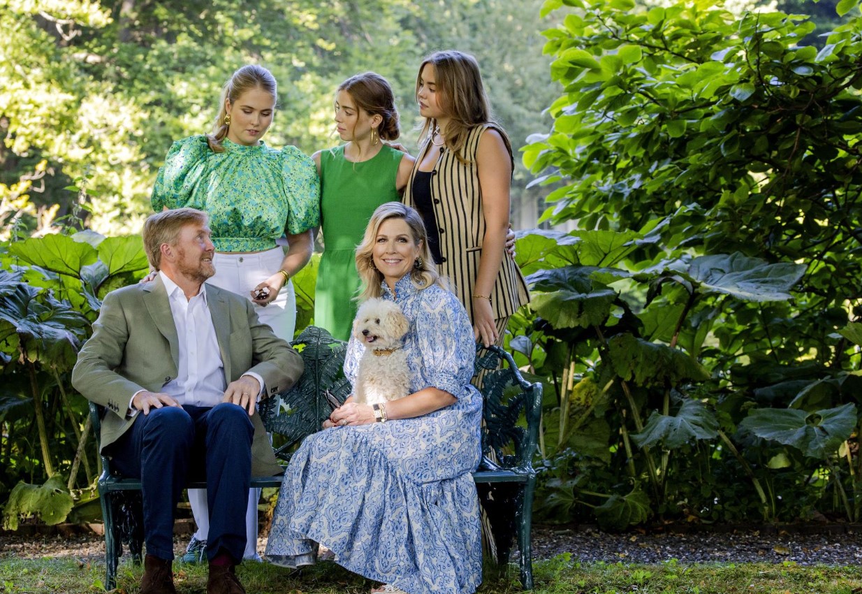 Οι φωτογραφίες, που τραβήχτηκαν στο καταπράσινο κήπο του παλατιού Huis ten Bosch, αποτυπώνουν τον βασιλιά Γουλιέλμο Αλέξανδρο και τη σύζυγό του, βασίλισσα Μάξιμα, μαζί με τις τρεις κόρες τους και τον σκύλο τους Mambo.