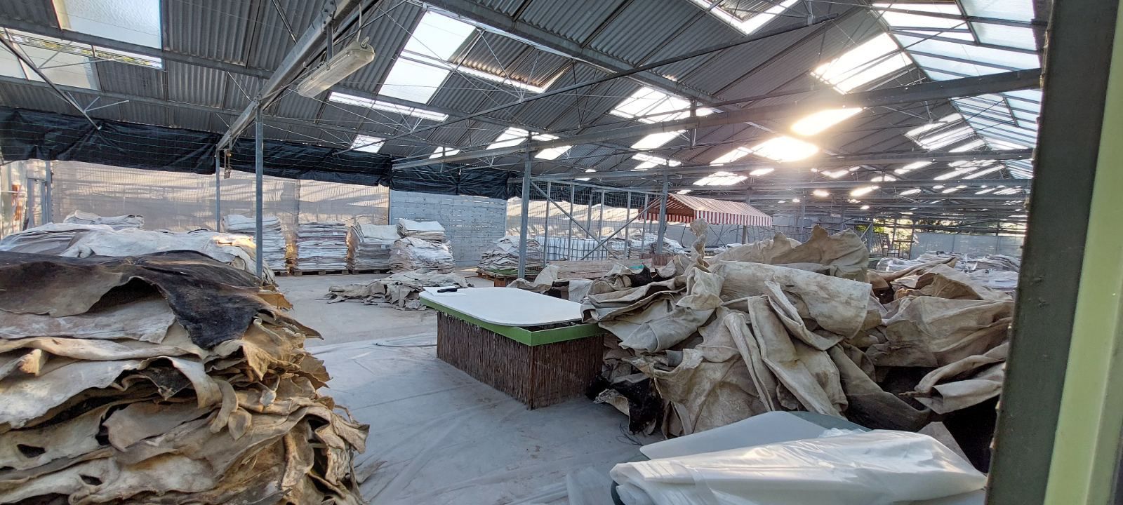 Όπως φαίνεται στις φωτογραφίες, σε έφοδο που έκαναν αστυνομικοί το πρωί της Πέμπτης (3/7), εντόπισαν εμποτισμένα δέρματα σε παλέτες με κοκαΐνη, την οποία οι δράστες επεξεργάζονταν ειδικά ώστε να την εξάγουν.