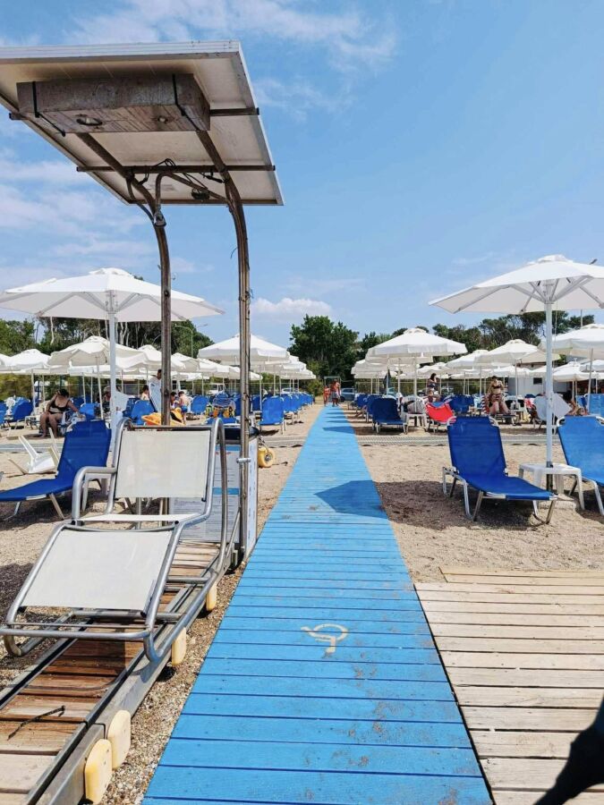 Ειδικά διαμορφωμένο διάδρομο πρόσβασης με σήμανση ΑμεΑ από τον χώρο στάθμευσης έως την ακτή.