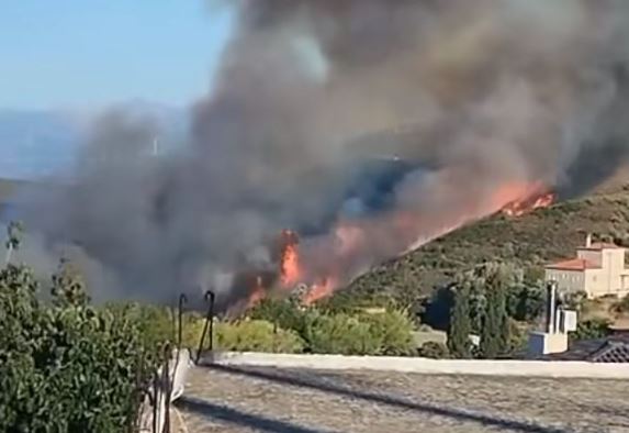 Σύμφωνα με την πυροσβεστική η φωτιά ξέσπασε σε δασική έκταση ανάμεσα στις περιοχές Μεσοχώρια και Τσακαίους και ενισχύεται από ισχυρούς ανέμους που πνέουν στην περιοχή, γεγονός που δυσχεραίνει το έργο της κατάσβεσης.
