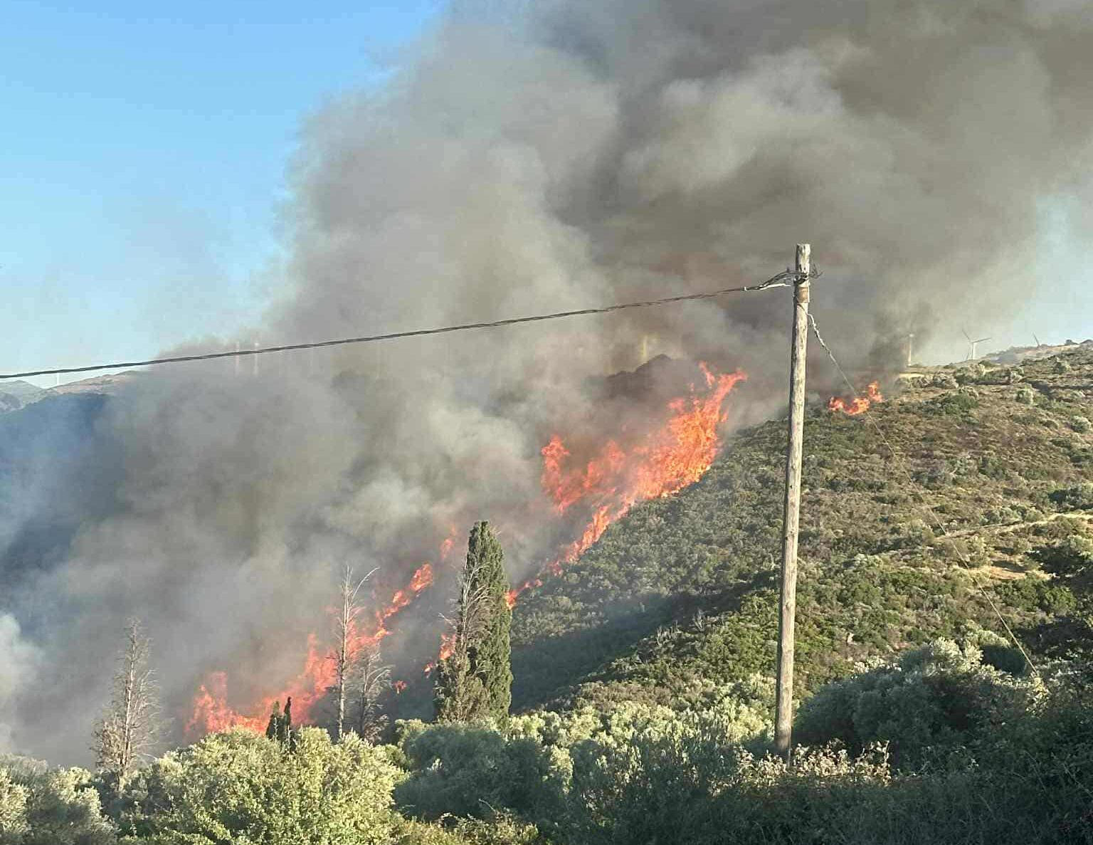 Ισχυρές δυνάμεις της Πυροσβεστικής συνεχίζουν αυτή την ώρα τη σκληρή μάχη στην περιοχή της Καρύστου, κοντά στον οικισμό Τσακαίοι, επιχειρώντας να ανακόψουν την καταστροφική πορεία της φωτιάς, η οποία έχει φτάσει σε απόσταση αναπνοής από τα σπίτια.