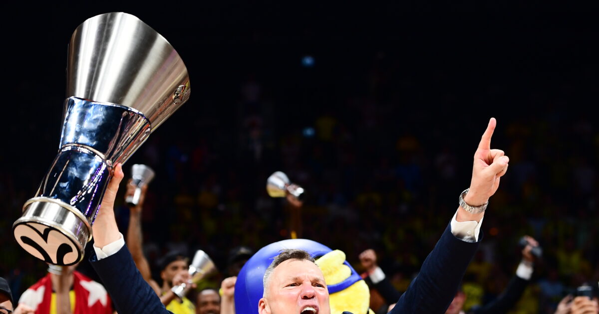 O Σαρούνας Γιασικεβίτσιους με το τρόπαιο της Euroleague / KLODIAN LATO / EUROKINISSI