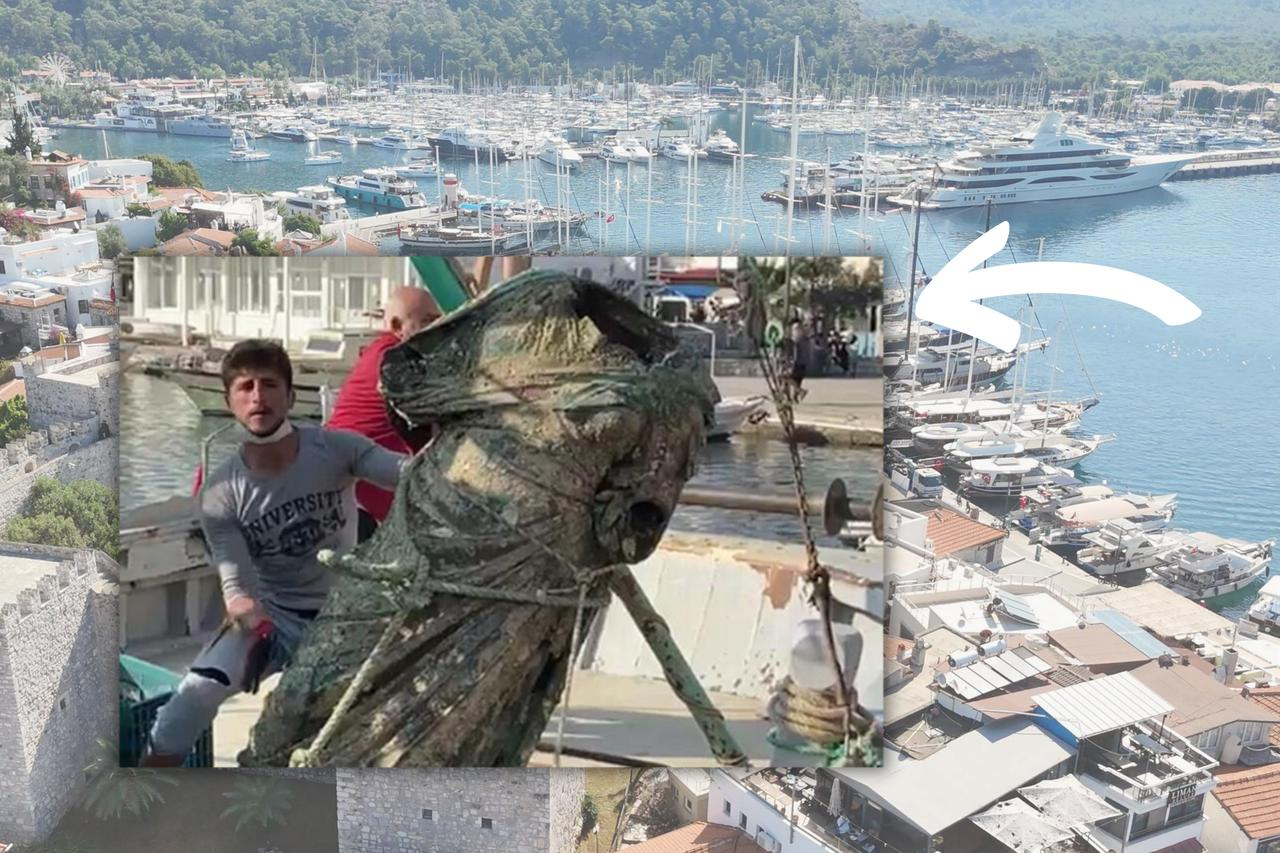Ένας ψαράς στην Μαρμαρίδα μάζεψε στα δίχτυα του ένα χάλκινο ειδώλιο γυναικείας μορφής, ηλικίας 2.000 χρόνων. Φωτογραφία – κολάζ: Türkiye Today