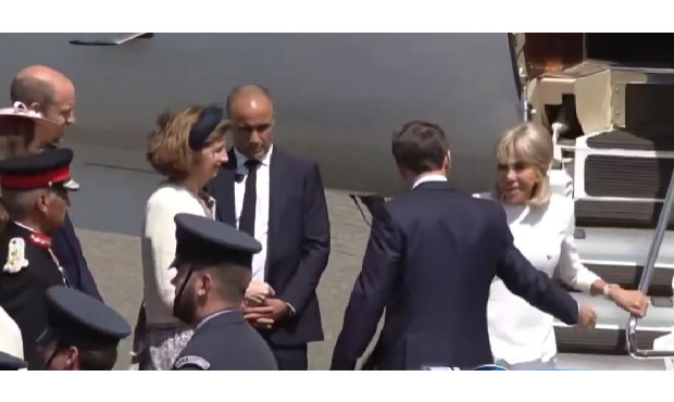 Άλλη μια άβολη στιγμή μπροστά στις κάμερες για τον Εμμανουέλ Μακρόν, μετά το χαστούκι στο Βιετνάμ… Κατά την άφιξη του προέδρου της Γαλλίας και της συζύγου του Μπριζίτ στο Ηνωμένο Βασίλειο όπου τους υποδέχθηκαν ο πρίγκιπας και η πριγκίπισσα της Ουαλίας, Γουίλιαμ και Κέιτ… Η Μπριζίτ κατεβαίνοντας τη σκάλα του αεροπλάνου αγνόησε το χέρι του συζύγου της…