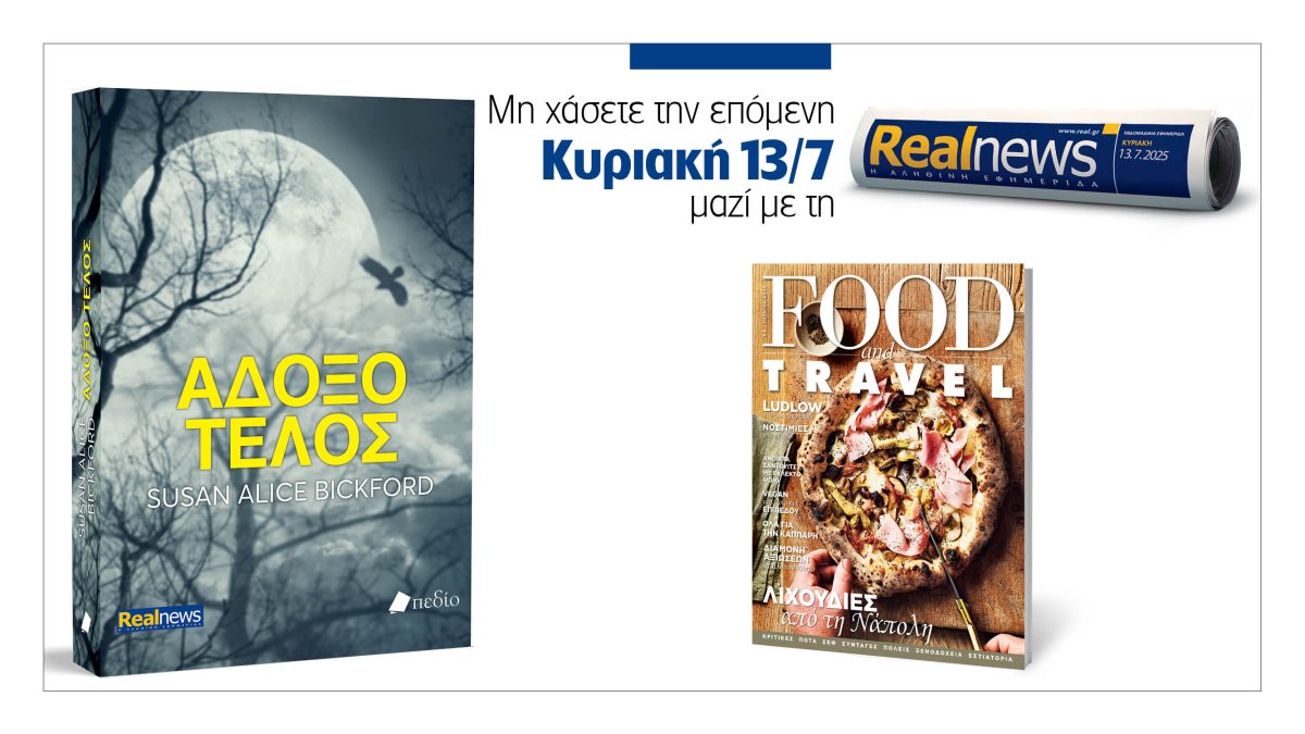 Σήμερα με τη Realnews: «Αδοξο τέλος» της Susan Alice Bickford – Μαζί Food & Travel 13:06, Κυριακή 13 Ιουλίου 2025 Media Αυτή την Κυριακή με τη Realnews: «Αδοξο τέλος» της Susan Alice Bickford – Μαζί Food & Travel