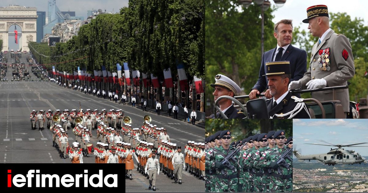 Στην παρέλαση για την Ημέρα της Βαστίλης στην πιο εμβληματική λεωφόρο του Παρισιού, 7.000 στρατιώτες και αστυνομικοί παρήλασαν έφιπποι ή οδηγώντας τεθωρακισμένα οχήματα, στέλνοντας το μήνυμα της επιχειρησιακής ετοιμότητας του γαλλικού στρατού και της στρατηγικής συνεργασίας με συμμάχους, καθώς η Γαλλία αυξάνει τον αμυντικό της προϋπολογισμό.