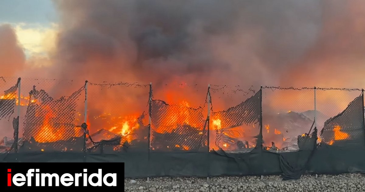 Η φωτιά ξέσπασε γύρω στις 8 το βράδυ και από τότε μαίνεται με ένταση, καθώς τα καύσιμα υλικά στο σημείο είναι ανακυκλώσιμες ύλες, οι οποίες δυσκολεύουν το έργο της κατάσβεσης.