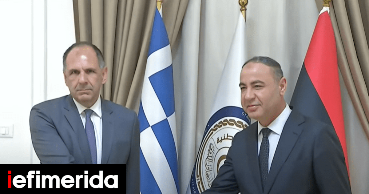 Ο υπουργός Εξωτερικών Γιώργος Γεραπετρίτης με τον Λίβυο ομόλογό του / Στιγμιότυπο από ΕΡΤ