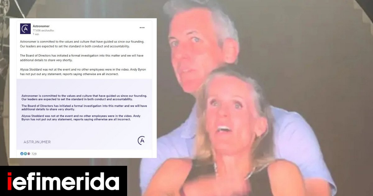 Η εταιρεία Astronomer ξεκίνησε επίσημη έρευνα μετά τον σάλο της «kiss cam» του φερόμενου παράνομου «εταιρικού» ζευγαριού στη συναυλία των Coldplay.