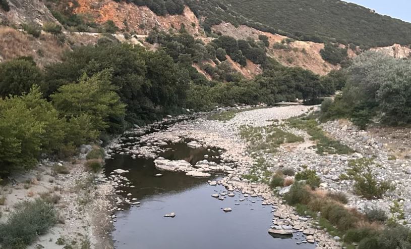 Η κατάσταση στον ποταμό Κομψάτο πριν από μερικές ημέρες, με το νερό να τελειώνει πριν το σημείο κατασκευής της γέφυρας