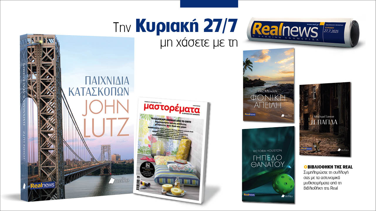 Αυτή την Κυριακή με τη Realnews: Παιχνίδια κατασκόπων του John Lutz – Μαζί αστυνομικά μυθιστορήματα και Μαστορέματα 07:20, Δευτέρα 21 Ιουλίου 2025 Media Αυτή την Κυριακή με τη Realnews: Παιχνίδια κατασκόπων του John Lutz, μαζί αστυνομικά μυθιστορήματα και Μαστορέματα