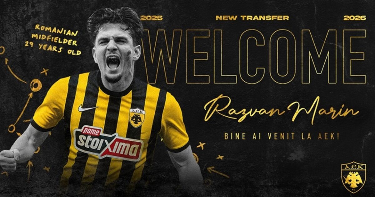 Στα 29 του χρόνια, ο Ραζβάν Μάριν ήταν ο εκλεκτός της ΑΕΚ για την ενίσχυση της μεσαίας γραμμής της ομάδας του Μάρκο Νίκολιτς και η μετεγγραφή ολοκληρώθηκε, με τον διεθνή Ρουμάνο ποδοσφαιριστή να είναι πλέον κι επίσημα παίκτης της Ένωσης.