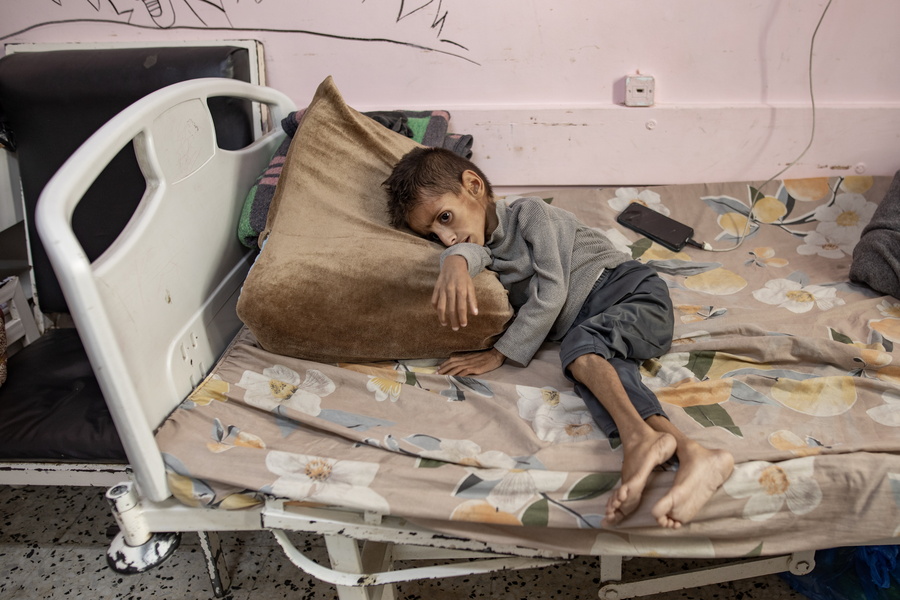 Αυτή είναι η δεύτερη φορά που νοσηλεύεται. Το πρόσωπό του είναι καταβεβλημένο, τα άκρα του είναι σχεδόν μόνο κόκαλα καλυμμένα με δέρμα και τα πλευρά του προεξέχουν από το στήθος του, όπως περιγράφει ρεπορτάζ του Guardian, με μαρτυρίες… Πηγή