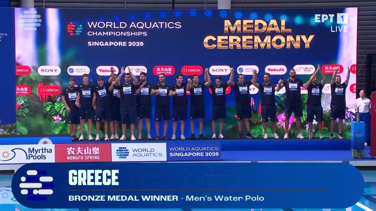 Μία ημέρα μετά τον μοναδικό θρίαμβο της εθνικής πόλο γυναικών με την κατάληψη της κορυφής του κόσμου, η ομάδα των ανδρών πήρε το ελάχιστο που άξιζε με βάση την εξαιρετική της παρουσία στο βάθρο της Σιγκαπούρης.