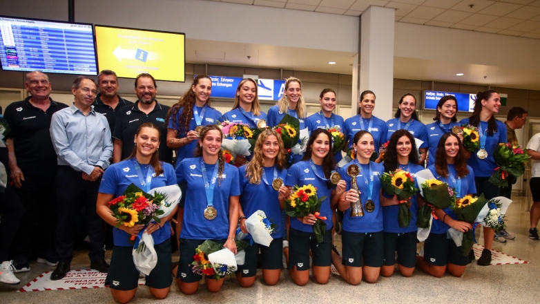Η αποστολή επέστρεψε με το χρυσό μετάλλιο από το Παγκόσμιο Πρωτάθλημα της Σιγκαπούρης στις αποσκευές της και προσγειώθηκε στο αεροδρόμιο «Ελευθέριος Βενιζέλος» λίγο πριν τις 7:00, με πτήση μέσω Ντόχα. Εκεί τα κορίτσια περίμεναν συγγενείς, φίλοι και φίλαθλοι που τις συνεχάρησαν για την επιτυχία τους.