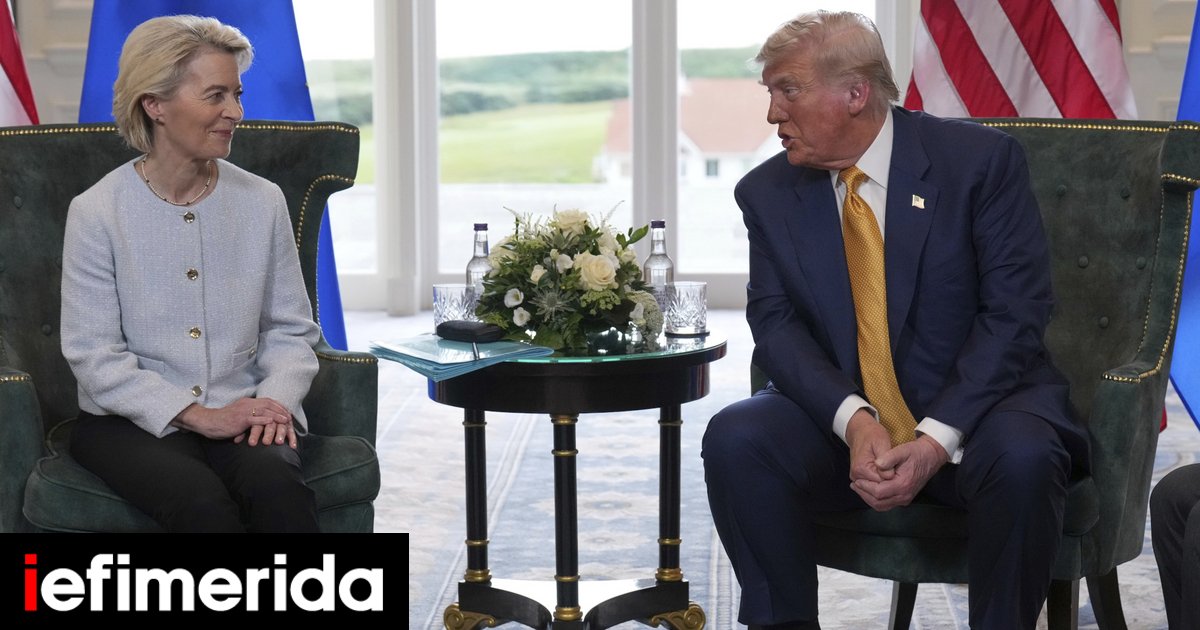 Σύμφωνα με το Bloomberg, οι ηγέτες μίλησαν στους δημοσιογράφους πριν από μια συζήτηση κεκλεισμένων των θυρών. Η Φον ντερ Λάιεν συμφώνησε με τις πιθανότητες του Τραμπ να επιτευχθεί deal είναι στο «50-50» και… Πηγή