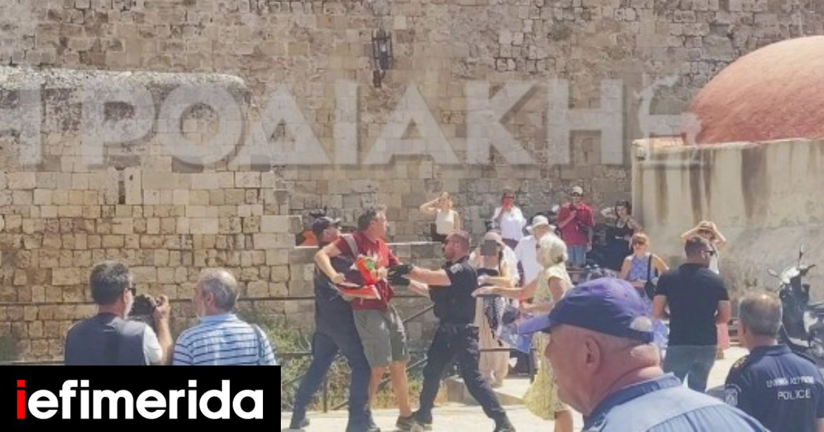 Σκηνικό έντασης επικράτησε το πρωί το λιμάνι της Ρόδου, με αφορμή την άφιξη κρουαζιερόπλοιου που μετέφερε περισσότερους από 650 Ισραηλινούς τουρίστες στο νησί.