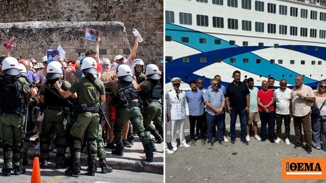 Δύο εντελώς διαφορετικές εικόνες εκτυλίχθηκαν σήμερα στο λιμάνι της Ρόδου με αφορμή την άφιξη του κρουαζιερόπλοιου Crown Iris, το οποίο μετέφερε περίπου 660 Ισραηλινούς τουρίστες στο νησί.