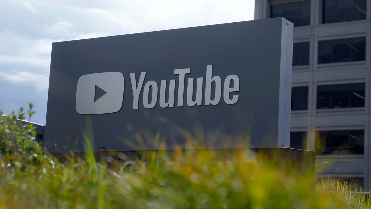A YouTube sign is shown near the company’s headquarters in San Bruno, Calif., Wednesday, March 12, 2025. (AP Photo/Jeff Chiu)