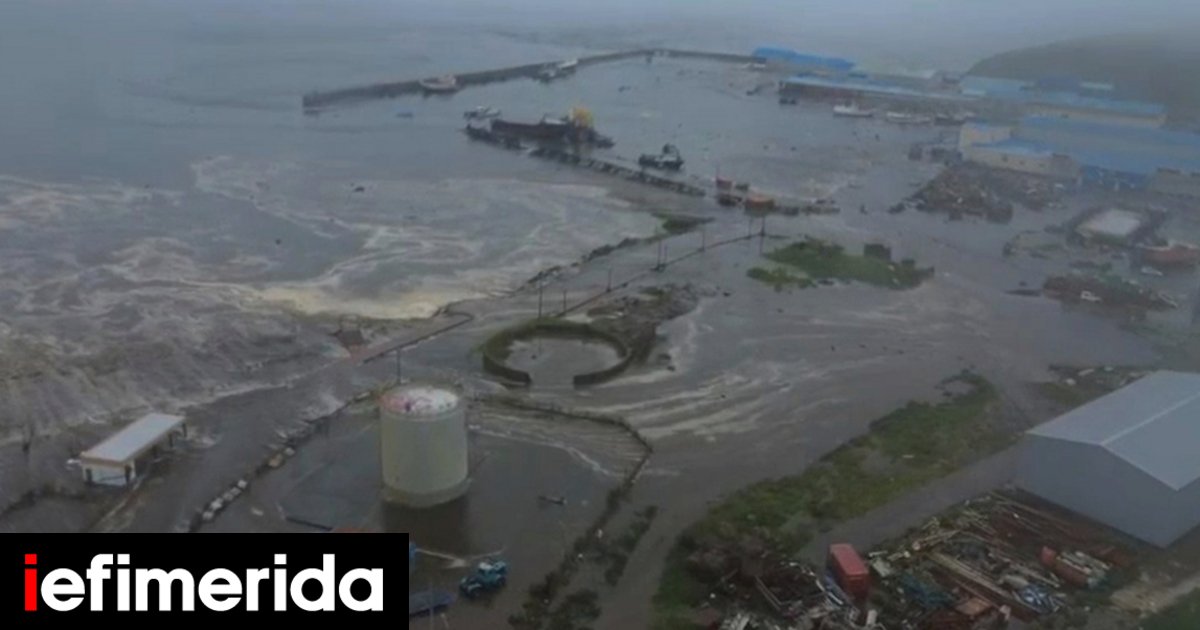 Εικόνα από βίντεο που κυκλοφόρησε η Γεωφυσική Υπηρεσία της Ρωσικής Ακαδημίας Επιστημών και δείχνει τις συνέπειες του τσουνάμι που έπληξε την παράκτια περιοχή Severo-Kurilsk στο νησί Paramushir των Κουρίλων Νήσων / ΑΡ