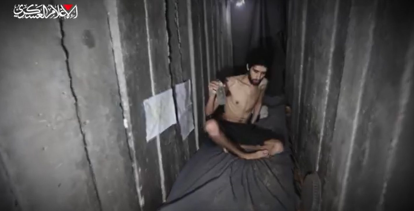 Στο βίντεο, διάρκειας λίγο παραπάνω από ένα λεπτό, διακρίνεται ο όμηρος, υπερβολικά αδύνατος και εμφανώς εξασθενημένος, να κρατείται μέσα σε ένα τούνελ.