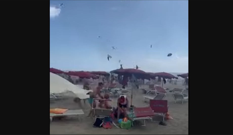 Πανικός επικράτησε στην παραλία Maccarese της Ιταλίας, το απόγευμα της Κυριακής, όταν ένας ανεμοστρόβιλος «χτύπησε» την περιοχή. Ads Μέσα σε μόλις λίγα λεπτά, ο ανεμοστρόβιλος σήκωσε ομπρέλες με τους λουόμενους να τρέχουν έντρομοι προς πάσα κατεύθυνση για να προστατευθούν.