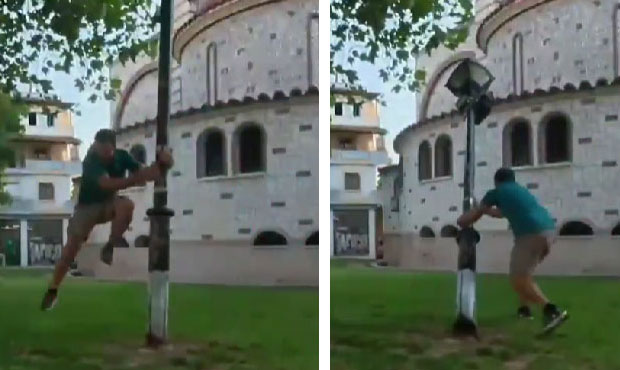 Ο Ευτύχης Μπλέτσας στριφογύρισε από μια κολώνα φωτισμού στον Εύοσμο και αυτή… έπεσε!