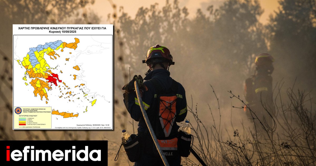 Σε κατάσταση συναγερμού βρίσκεται ολόκληρος ο κρατικός μηχανισμός λόγω του μεγάλου κινδύνου που υπάρχει σήμερα (10/8) για εκδήλωση πυρκαγιάς.