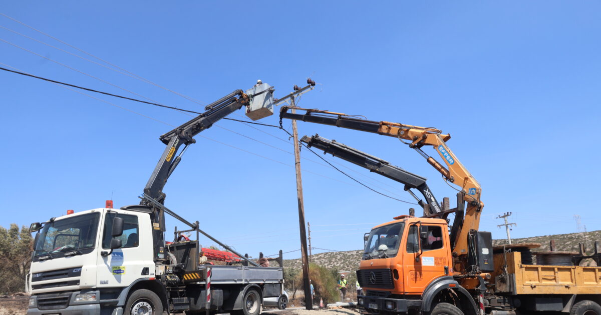 Συνεργεία προσπαθούν να αποκαταστήσουν τις ζημιές σε κολόνες της ΔΕΗ / ΓΙΑΝΝΗΣ ΠΑΝΑΓΟΠΟΥΛΟΣ / EUROKINISSI
