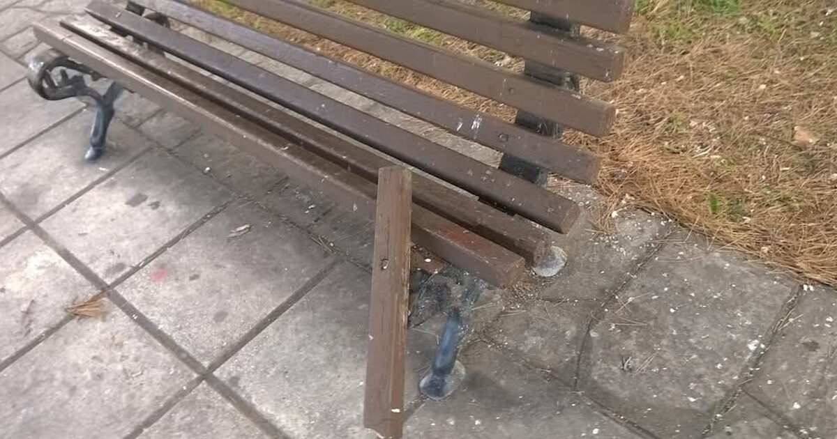 Ένα από τα παγκάκια που έσπασαν οι ανήλικοι