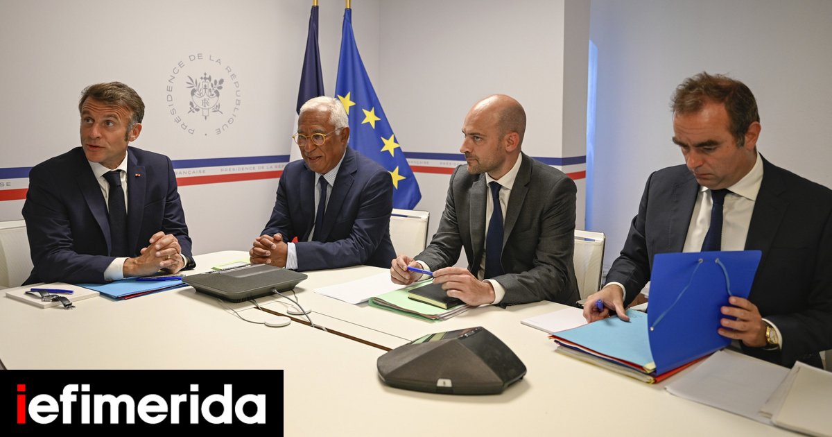 Μετά τις συνομιλίες με τον Βολοντίμιρ Ζελένσκι και τον Ντόναλντ Τραμπ, ο Εμανουέλ Μακρόν μίλησε στον Τύπο, έχοντας στο πλευρό του τον πρόεδρο του Ευρωπαϊκού Συμβουλίου, Αντόνιο Κόστα.