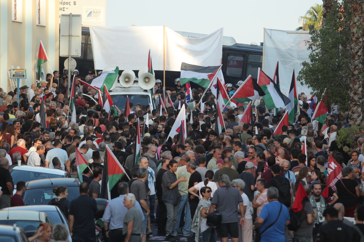 Ωστόσο, αντιπροσωπεία συνδικάτων κατάφερε να ανοίξει πανό με το σύνθημα «Λευτεριά στην Παλαιστίνη» και μέσα στο λιμάνι.