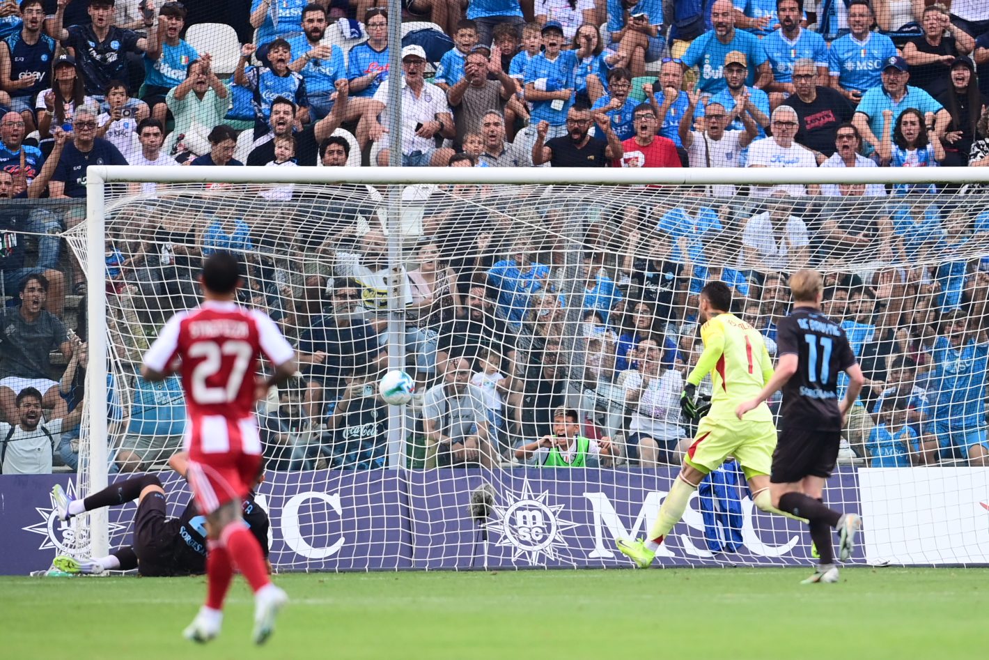 Το παιχνίδι ξεκίνησε με έντονο ρυθμό και δυνατές μονομαχίες, θυμίζοντας επίσημη αναμέτρηση. Η Νάπολι είχε την πρωτοβουλία των κινήσεων και προηγήθηκε στο 16’ με ένα υπέροχο φαλτσαριστό σουτ του Πολιτάνο,… Πηγή