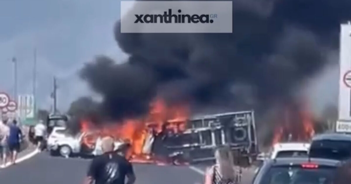 Από το ένα ΙΧ απανθρακώθηκαν τρεις επιβάτες, ενώ σοβαρά τραυματισμένος μεταφέρθηκε στο νοσοκομείο της Ξάνθης ο οδηγός του.