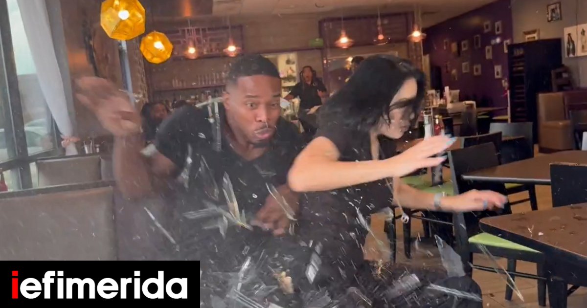 Από θαύμα γλίτωσε ένα ζευγάρι όταν ένα όχημα έπεσε με φόρα μέσα από την τζαμαρία ενός εστιατορίου και κατέληξε επάνω τους, την ώρα που εκείνοι τραβούσαν βίντεο.