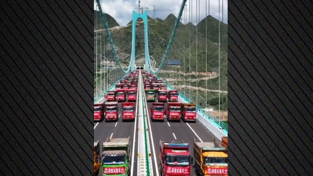 Με 96 φορτηγά γεμάτα βάρος, οι αρχές στην Κίνα έβαλαν σε κρίσιμη δοκιμή την ψηλότερη γέφυρα του κόσμου, λίγο πριν παραδοθεί στην κυκλοφορία.
