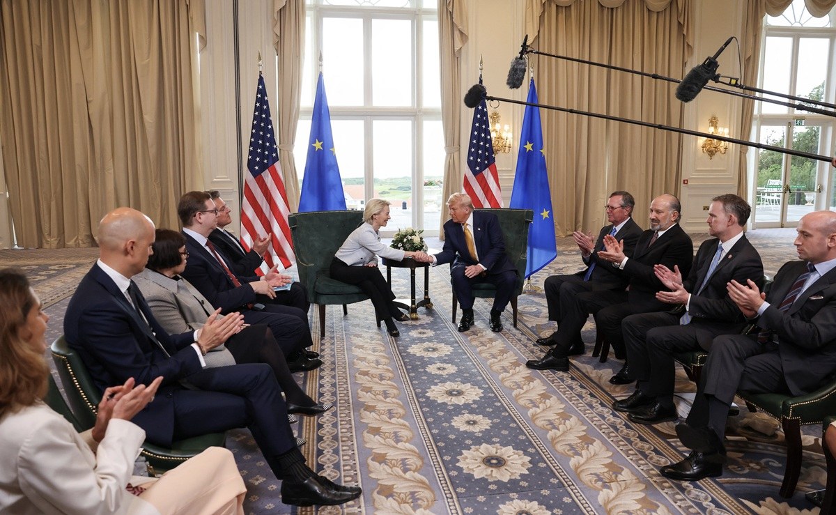 Ο Πρόεδρος των ΗΠΑ, Ντόναλντ Τραμπ ανακοίνωσε μετά τη συνάντηση με την Ούρσουλα φον ντερ Λάιεν ότι οι Ηνωμένες Πολιτείες κατέληξαν σε εμπορική συμφωνία με την Ευρωπαϊκή Ένωση. Σύμφωνα με τη νέα συμφωνία θα επιβάλλονται δασμοί 15% σε όλα τα προϊόντα εκτός από τον χάλυβα και το αλουμίνιο, όπου θα ισχύουν οι δασμοί 50% που είχαν επιβληθεί τον Ιούνιο.