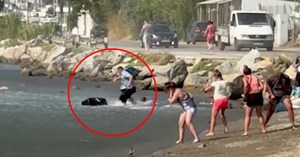 Αυτή τη φορά, στο ίδιο σημείο και πάλι, μία ομάδα ανθρώπων είδε τις αποσκευές τους να βγάζουν «φτερά» και να κάνουν «μακροβούτι» μέσα στη θάλασσα. Ο λόγος; Η πολύ κοντινή απόσταση από τις τουρμπίνες αεροσκάφους της Ryanair που ετοιμαζόταν να απογειωθεί από τον αεροδιάδρομο.