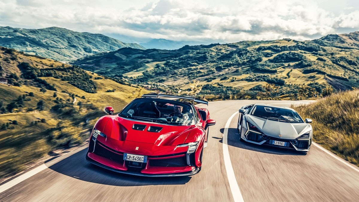 Η μεγαλύτερη αντιπαλότητα στον πλανήτη γίνεται υβριδική. Ετοιμαστείτε για μια αποκλειστική αναμέτρηση 2.045 PS: H Lamborghini Revuelto συναντά τη Ferrari SF90 XX Spider.
