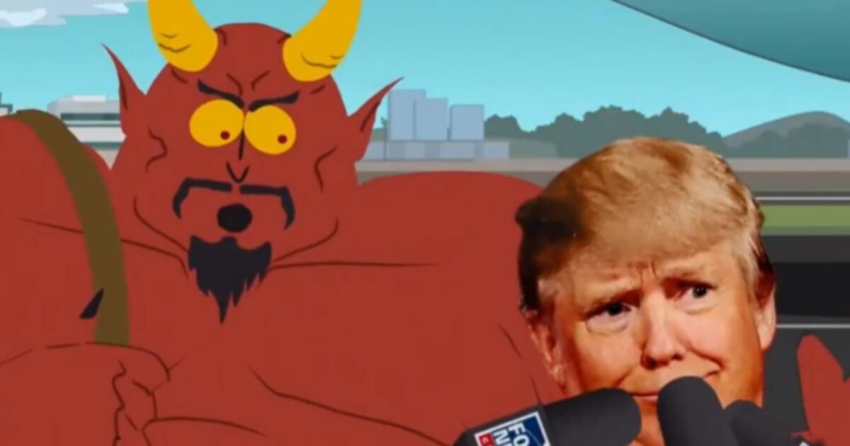Η σατιρική σειρά κινουμένων σχεδίων «South Park», επέλεξε στο επεισόδιο, σε μια από τις πρώτες σκηνές, να δείξει τον Ντόναλντ Τραμπ να κατεβαίνει από το εντυπωσιακό αεροσκάφος του προέδρου των ΗΠΑ, Air Force One, έχοντας τον Σατανά στο πλευρό του.