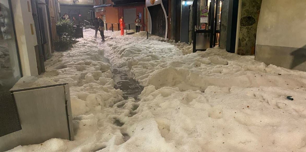 Οι δρόμοι στην αλπική πόλη Γκαπ έμοιαζαν με λευκά ποτάμια από πάγο, έπειτα από μια παράξενη καταιγίδα που έπληξε την περιοχή, συνοδευόμενη από γιγαντιαίο χαλάζι, καταρρακτώδεις βροχές και ισχυρούς ανέμους.