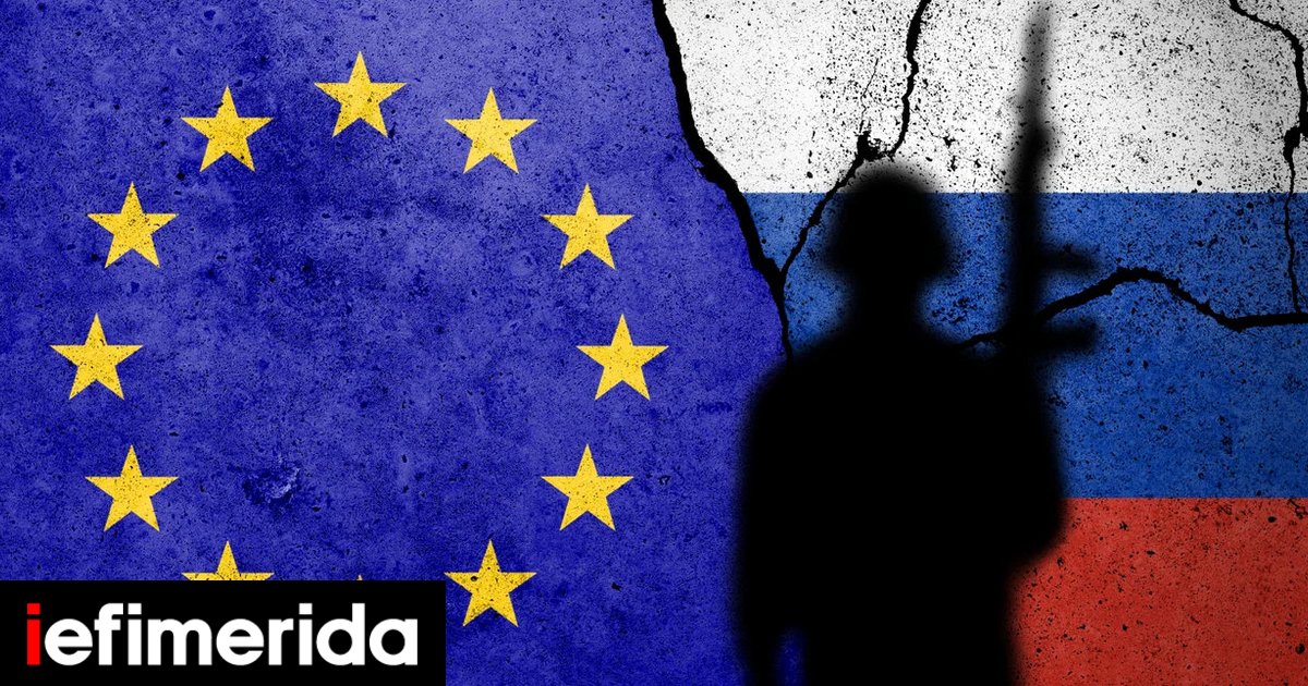 Σημαίες ΕΕ και Ρωσίας με τη σκιά στρατιώτη / Φωτογραφία αρχείου: Shutterstock